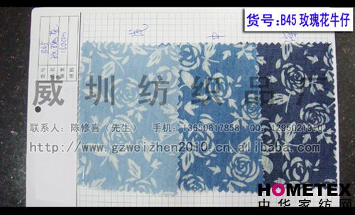 長期供應(yīng) 玫瑰花牛仔面料 洗水牛仔面料 工藝印花洗