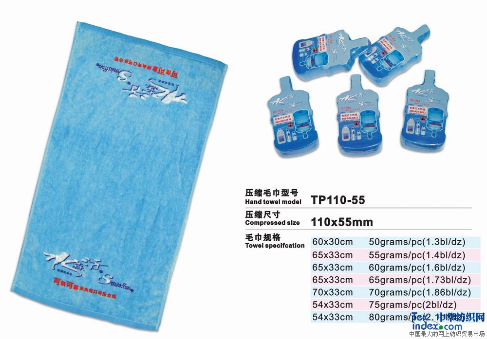 高級(jí)環(huán)保壓縮毛巾是二十一世紀(jì)的高科技成果、采用100%純棉經(jīng)高溫壓處理而成的新一代產(chǎn)品。放入水中浸片刻即可張開使用。本產(chǎn)品新奇獨(dú)特,干凈衛(wèi)生,產(chǎn)品企業(yè)形象宣傳極具效力。廣泛用于廣告宣傳界、酒店、旅游公司等。