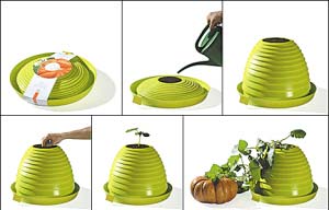 這個可降解的伸縮花瓶在拉伸開來并埋上種子澆水開始使用之后,可以保持正常狀態(tài)9個月時間,之后就可以拋棄到垃圾箱里,在大自然中完全降解。   在這9個月的時間,花瓶還可以根據(jù)植物的生長狀態(tài)而改變形狀。在秋末冬初,天氣變冷植物枯死的時候,花盆也到了使用期限,可以跟植物一起腐化分解在自然中。