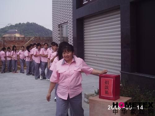 “伸出我們的雙手,獻出我們的愛心吧”。溫爾思家紡全體員工都以實際行動全力支持了此次募捐活動。全體員工排成長長的縱隊,以自己的方式,用自己的一片愛心為受災人民提供援助,幫助四川汶川縣災民度過難關!也響應了溫爾思“溫情暖萬家,關愛澤天下”的企業(yè)宗旨,關愛澤天下”作為企業(yè)宗旨的私營企業(yè),溫爾思家紡發(fā)起倡議,建議向四川地震災區(qū)捐款。