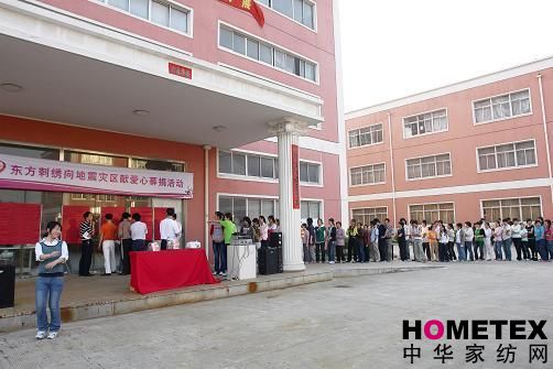 5月17日下午,東方刺繡舉辦了“向地震災區(qū)獻愛心”活動,公司董事長王仁愛帶頭為災區(qū)人民捐款,緊接著各個部門領導及其他員工也伸出了援助之手。