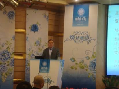 發(fā)布會上,運營中心總監(jiān)閆愛兵先生發(fā)表了重要講話,他深入總結了惠誼的發(fā)展的三個時期:快速起步階段、調整陣痛期、穩(wěn)步發(fā)展期。分析了多變的2009年,并對09年的工作進行了回顧,對各地的銷售業(yè)績、網絡拓展、品牌推廣及促銷活動、道具形象、產品包裝、產品開發(fā)、團隊建設等方面進行了歸納和總結。對目前惠誼存在的問題進行理性地分析,并提出改善的建議。在此基礎上有的放矢地制訂了2010年的工作計劃,仍然突出一個“多變”的理念。最后用美國總統(tǒng)奧巴馬的一句話來提升主題:“Change! It is what believe in.(變革!源自我們的信念。)” 將整場發(fā)布會推向高潮,博得與會嘉賓們的陣陣喝彩。