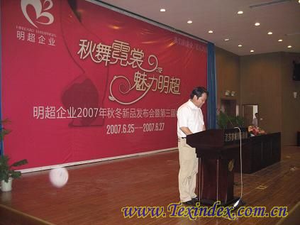 6月24—27日,明超企業(yè)在疊石橋·賽城陽光大酒店召開了2007年秋冬新品發(fā)布會,全國各地的經(jīng)銷商300多人參加了這次聚會,借此機會,經(jīng)銷商也參觀了明超企業(yè)在建的廠房,大家都對明超的未來充滿希望!